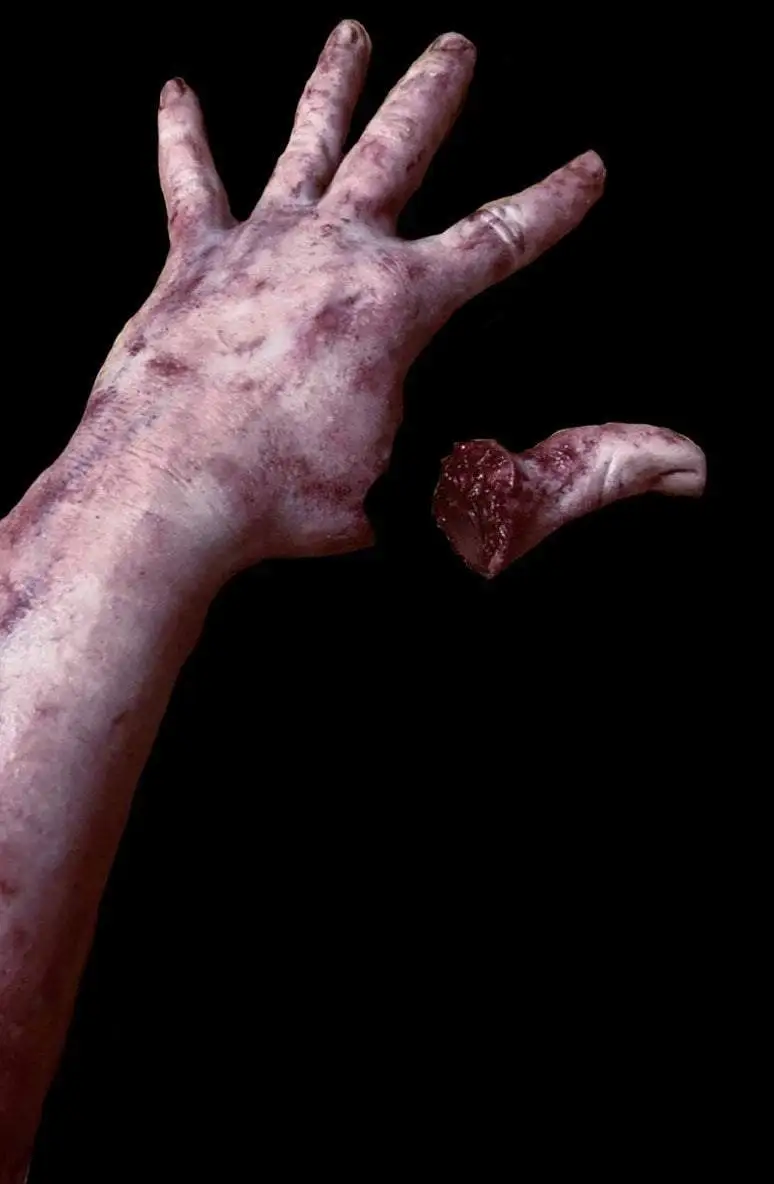 This severed male arm has solid silicone fingers and hand with a foam core in the forearm and silicone skinned. Highly detailed and film ready. The thumb has magnets in it for easy removal and reattachment. Scarring, blood stain and skin tones may vary because these are made individually to assure each one is unique and a one of a kind. The perfect addition to your escape room or haunt set.